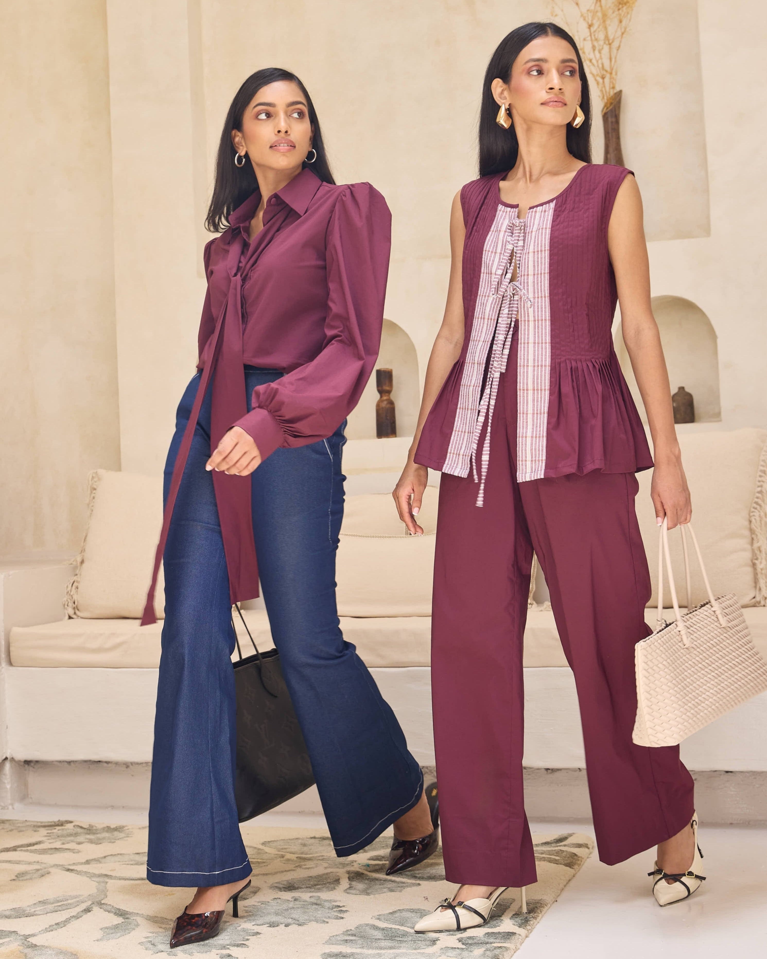 Sisters. Different in spirit, united in bond. Our campaign reflects that bond: different, yet always connected. The Sisterhood Edit is made for women who live many worlds in one — balancing work and life, independence and togetherness — with clothes that move as seamlessly as they do.